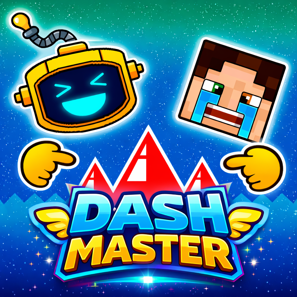 In Dash Master, players control a geometric icon constantly moving through a series of obstacle-filled levels. Players typically control the character using simple actions such as clicking the mouse, pressing the keyboard, or tapping the screen.