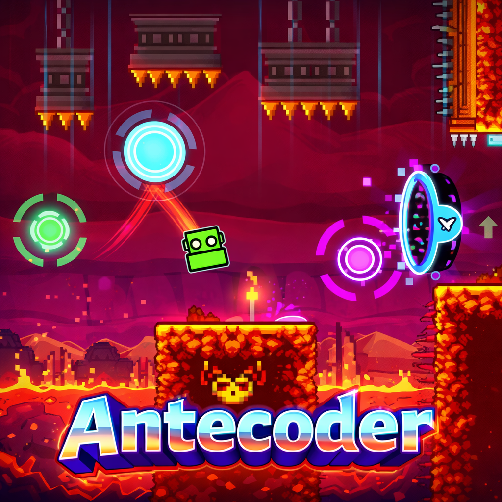 Geometry Dash Antecoder is a dramatic rhythm-based platformer that challenges players to control a geometric icon through a path full of obstacles. Focusing on reflexes and memory, players must navigate through spikes, pits, and moving hazards synchronized with the vibrant soundtrack.