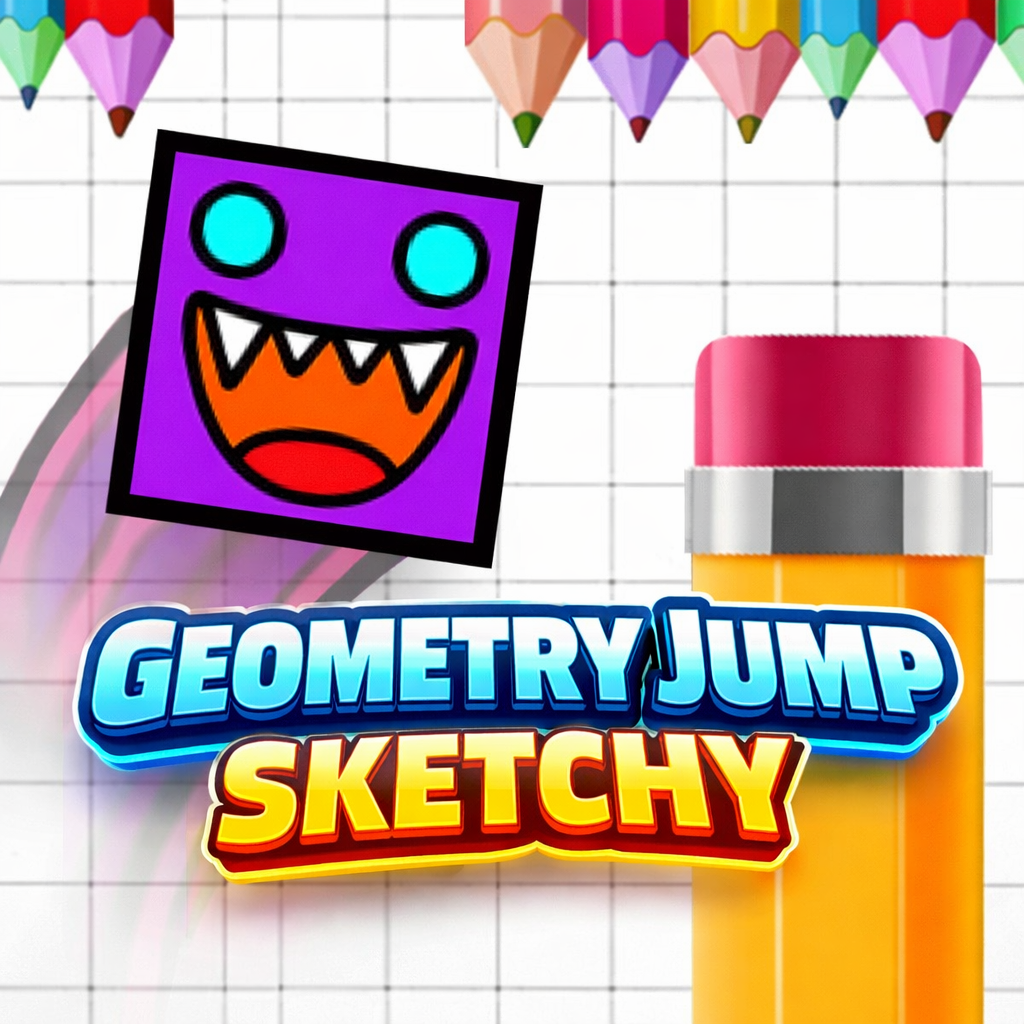 Explore the high-speed platforming challenge in Geometry Jump Sketchy! Each level looks like it's sketched in a notebook, complete with pencil lines, grid paper backgrounds, and colorful, doodle-style obstacles. Your mission is simple: jump over spikes, dodge difficult obstacles, and survive to the end of each level.