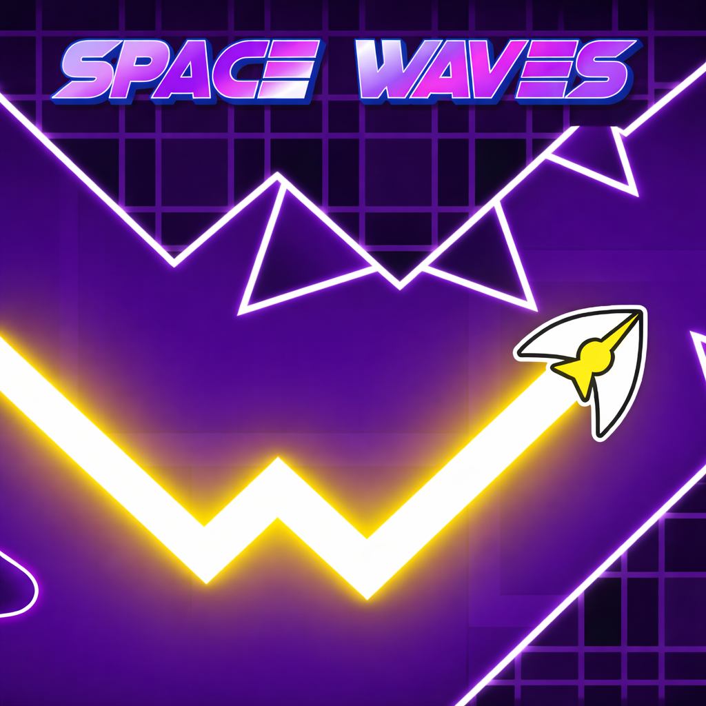 Explore the high-speed levels in Space Waves! Your goal is to control an arrow as it hurtles through neon-lit space tunnels teeming with hazards like walls, spikes, spinning gears, and enemy ships.